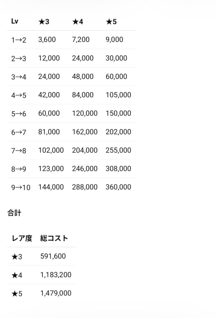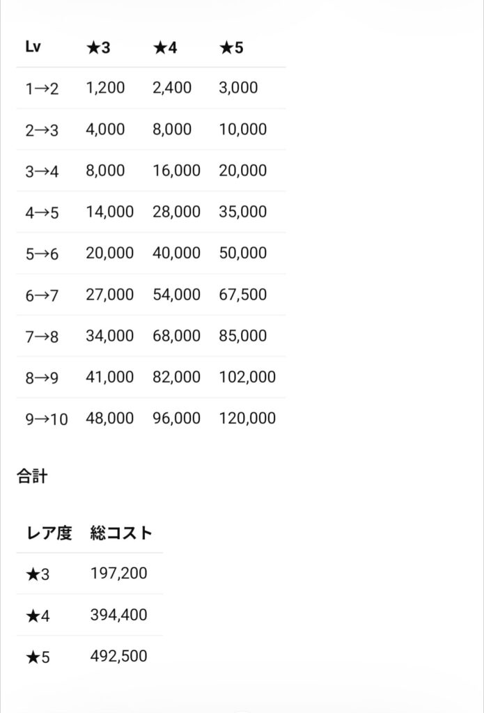 ■ スキル強化コスト